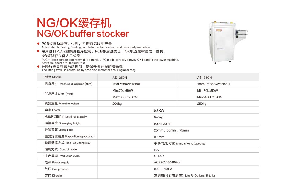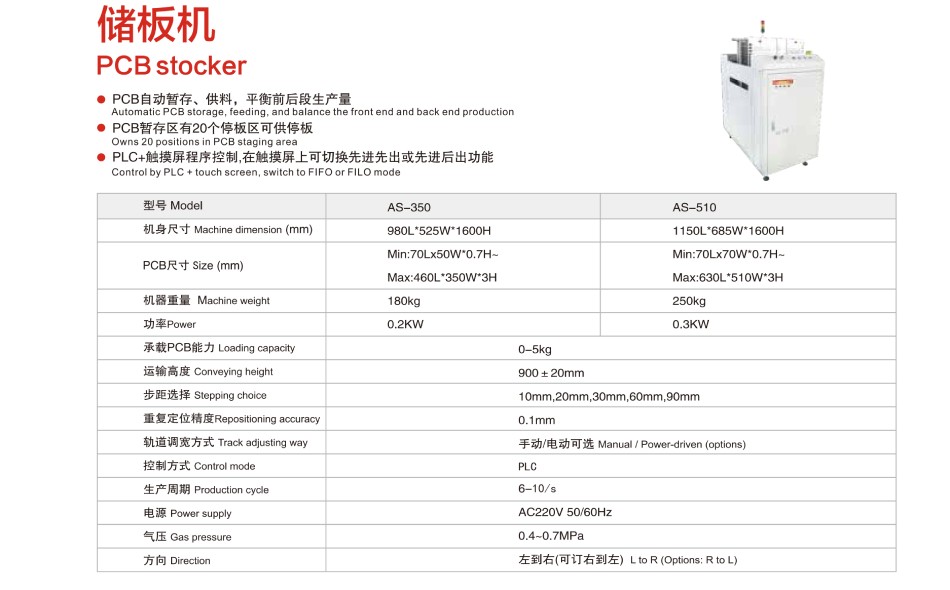 SMT周邊設備主要有:全自動PCB上下料機、平行移載機、PCB儲板機、NG/OK緩存機、接駁臺、光板真空上料機、翻板輸送機等小型機。