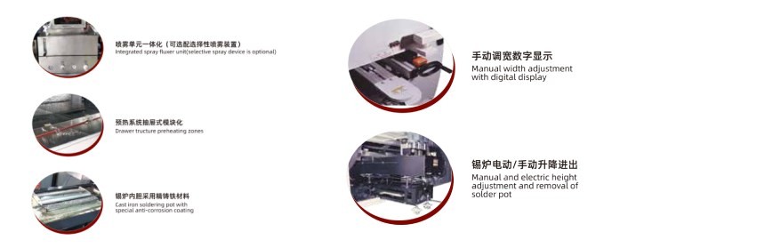 ●預熱系統采用微熱風+遠紅外發熱管方式,三段預熱溫區,抽屜式模塊化設計,靈活選擇混合預熱模式。溫度均勻穩定。